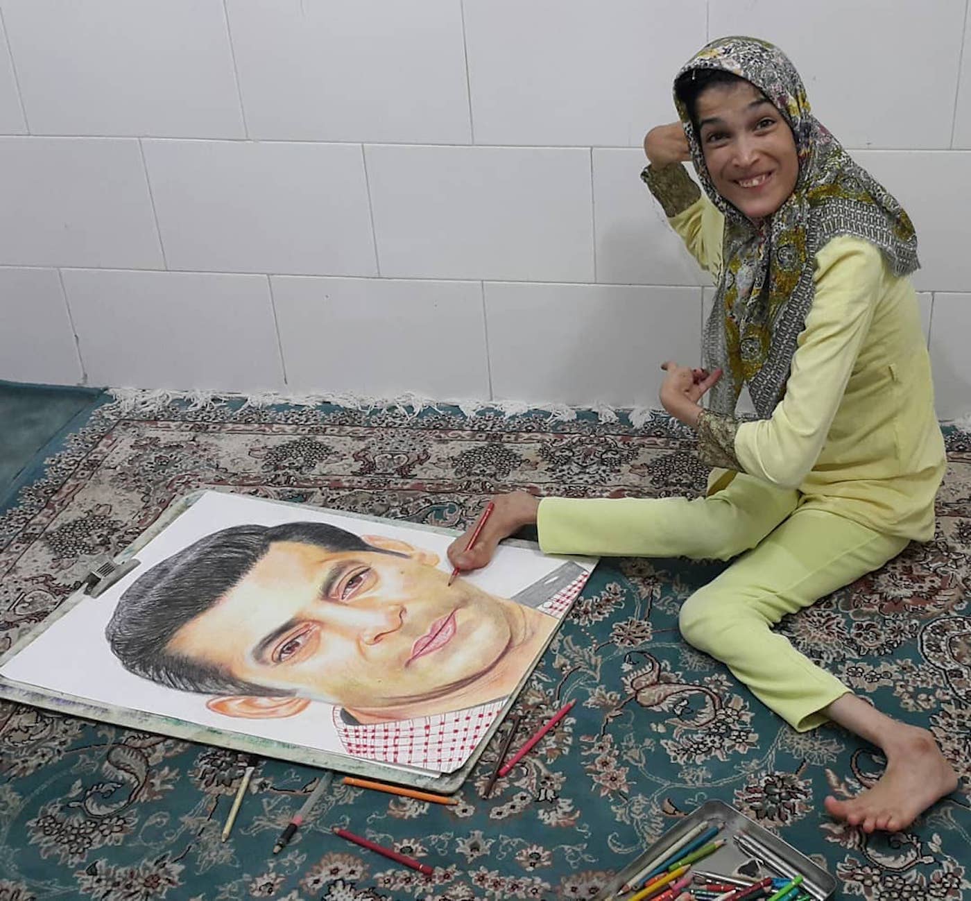 Handicapée talentueuse aussi, c’est l’histoire de Fatemeh Hammami Nasrabadi. C’est une jeune Iranienne qui défie son handicap. En effet, même si elle ne peut contrôler ses mains, elle a su utiliser ses pieds pour peindre!