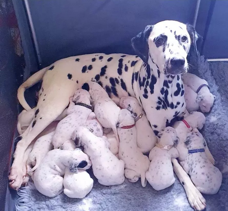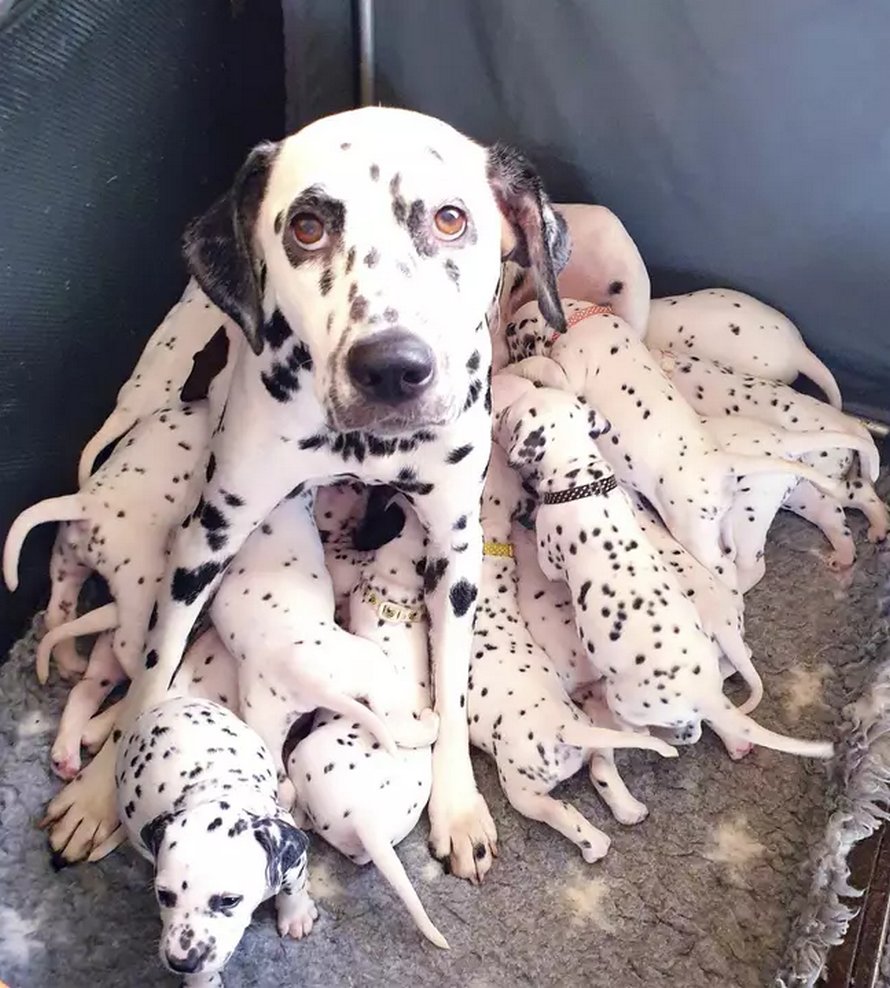 Une portée de 18 chiots, un record pour cette maman Dalmatien