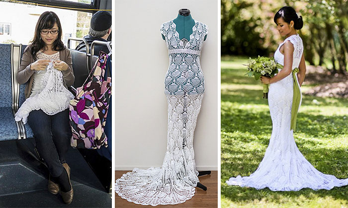 Qu’elles soient tricotées ou crochetées sur le chemin du travail, ou alors cousues à la main ou à la machine,  ces robes sont des merveilles!